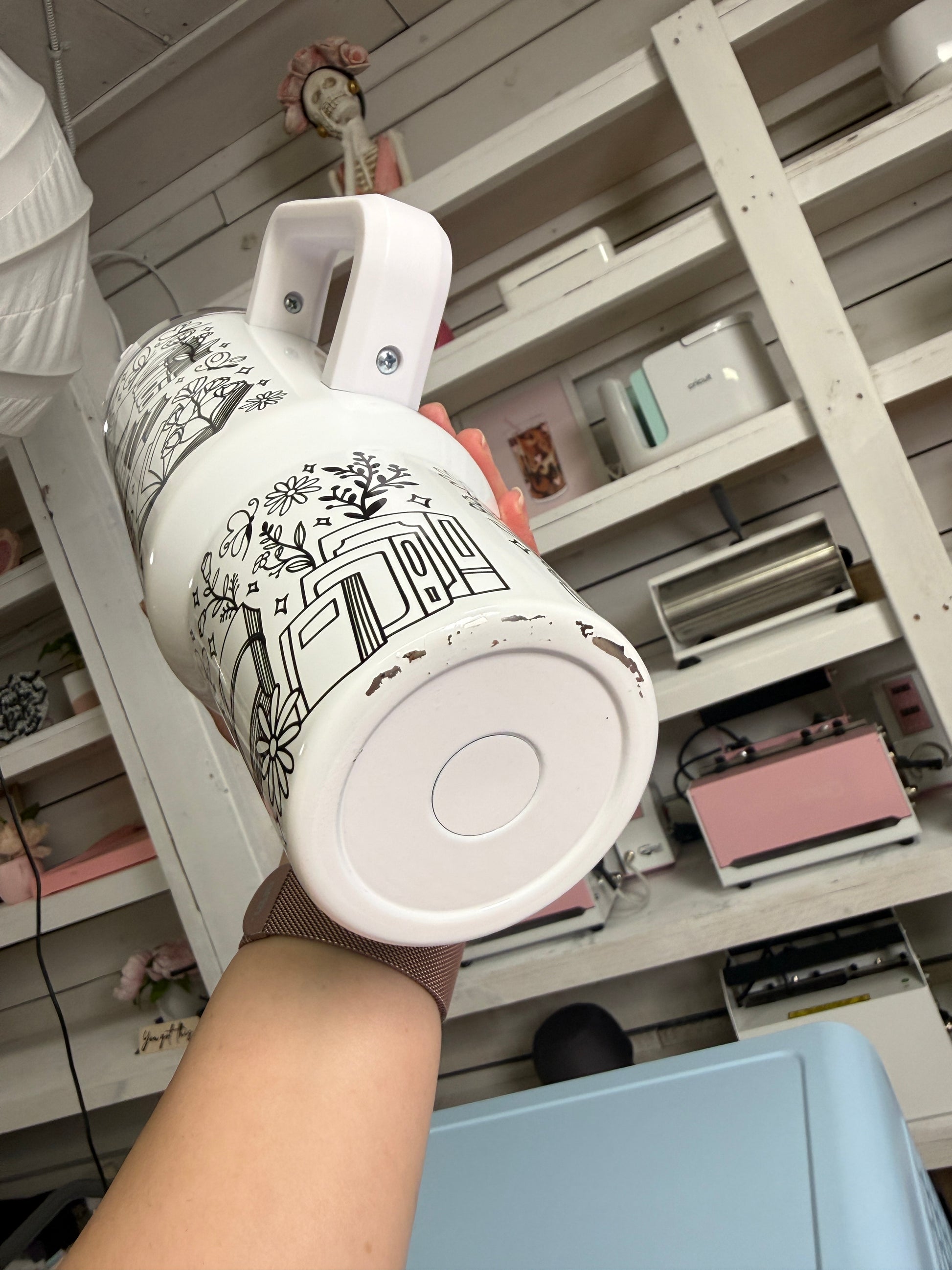 This tumbler has a small oopsie at bottom shown in photo. Clearance sales are non-refundable.