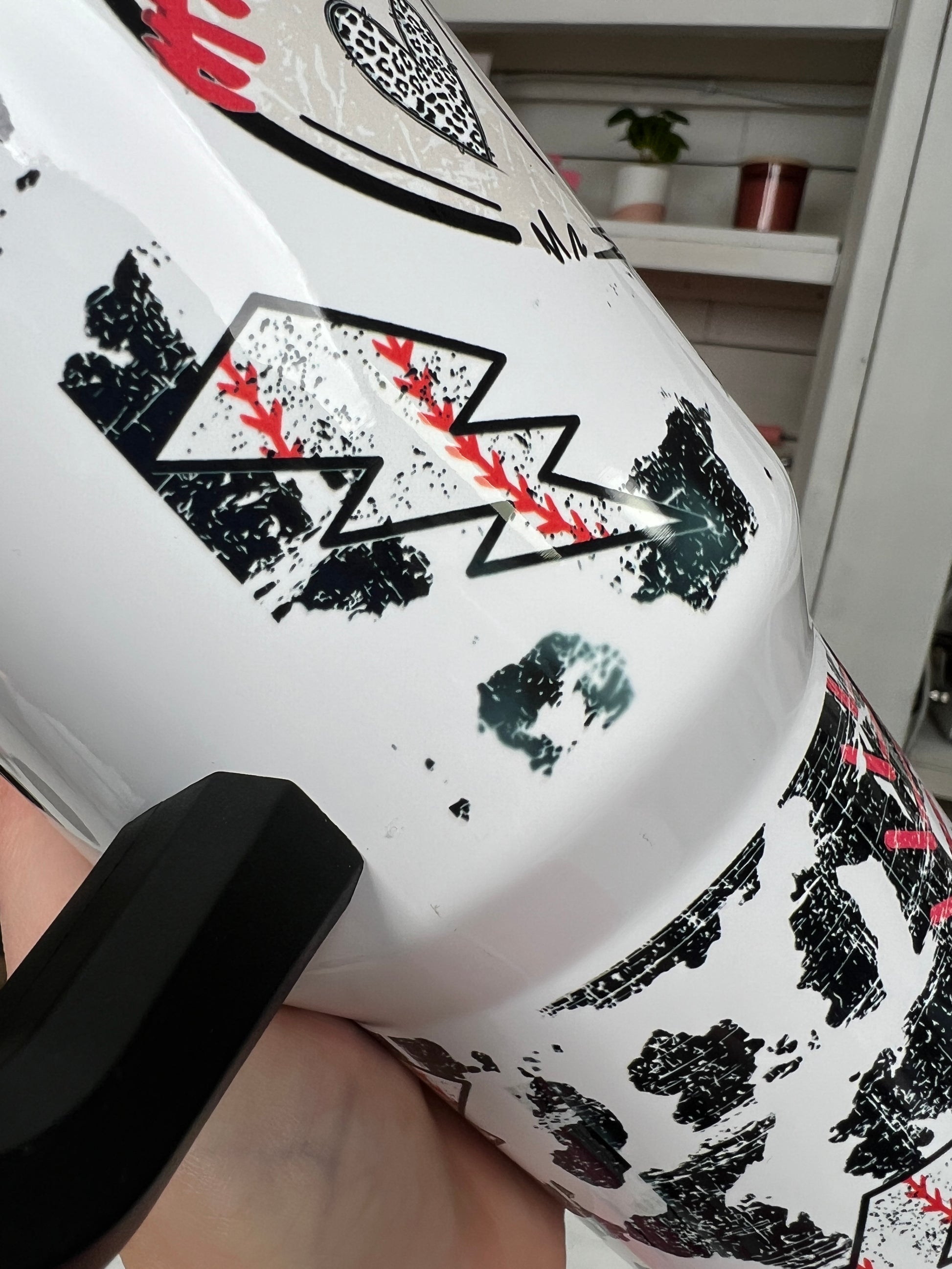 This tumbler has a small oopsie shown in photo (faded press). Clearance sales are non-refundable.