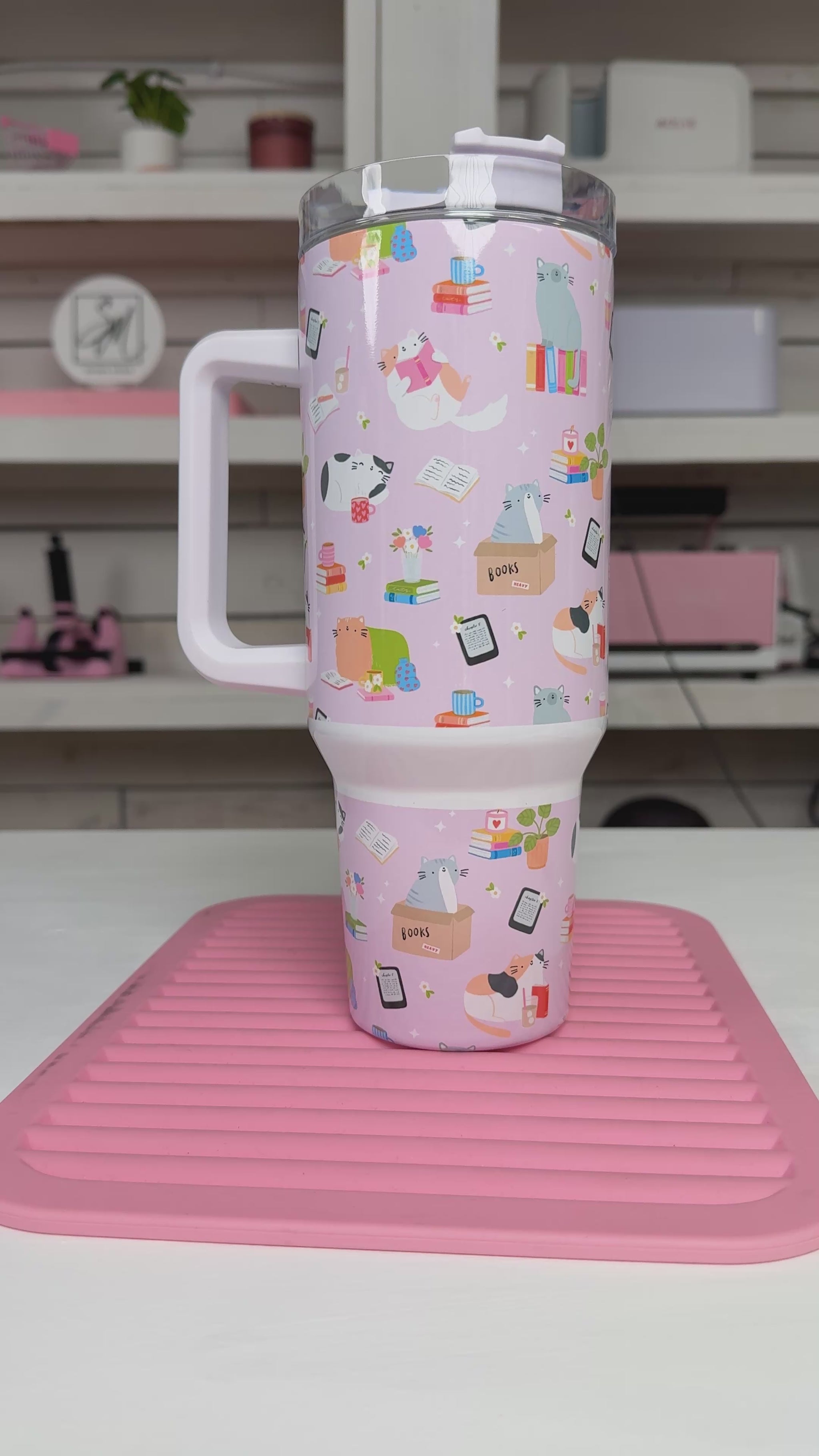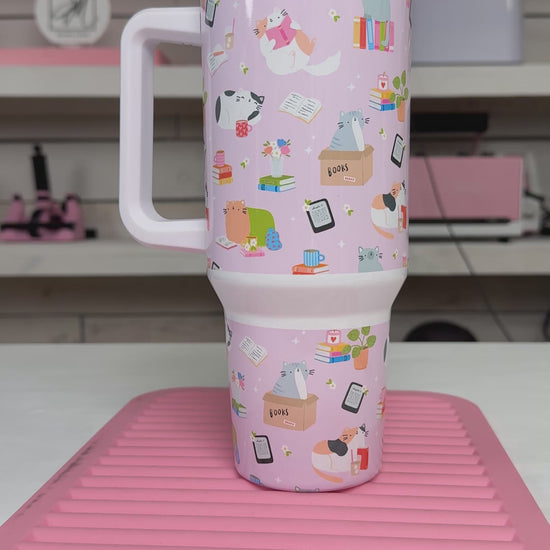 Bookish Cats 40oz tumbler, Book Vibes quencher, Books and Cats custom tumbler