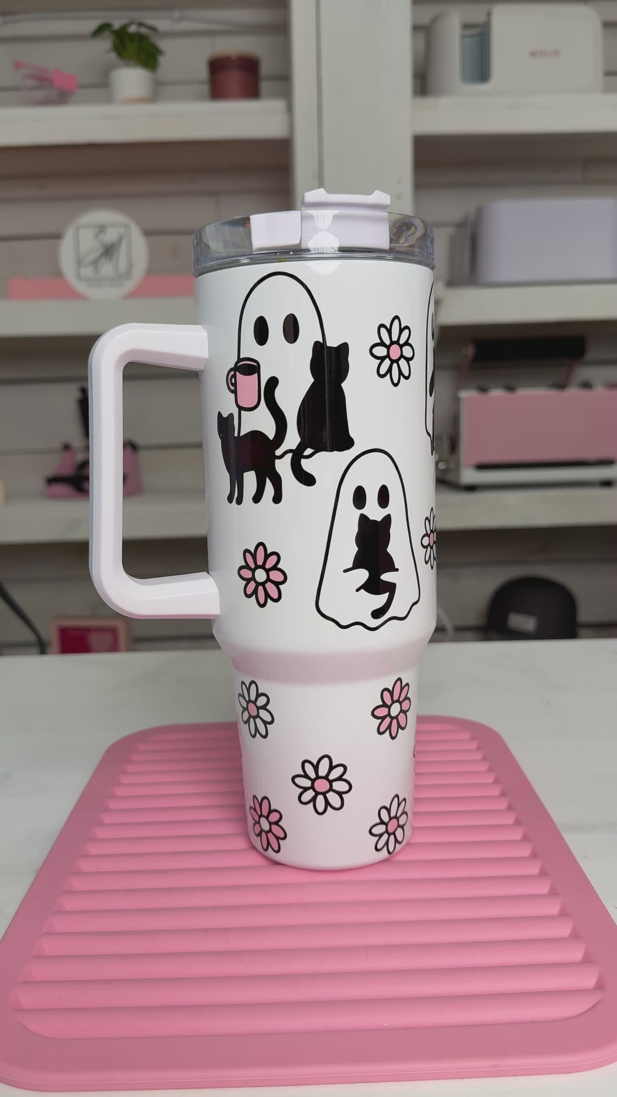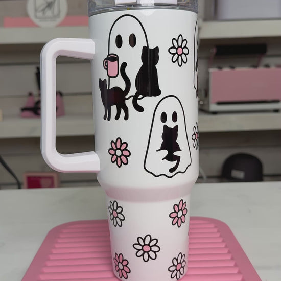 Cute Ghosties 40oz tumbler, Book Ghosts quencher, Ghost Cat Coffee custom tumbler
