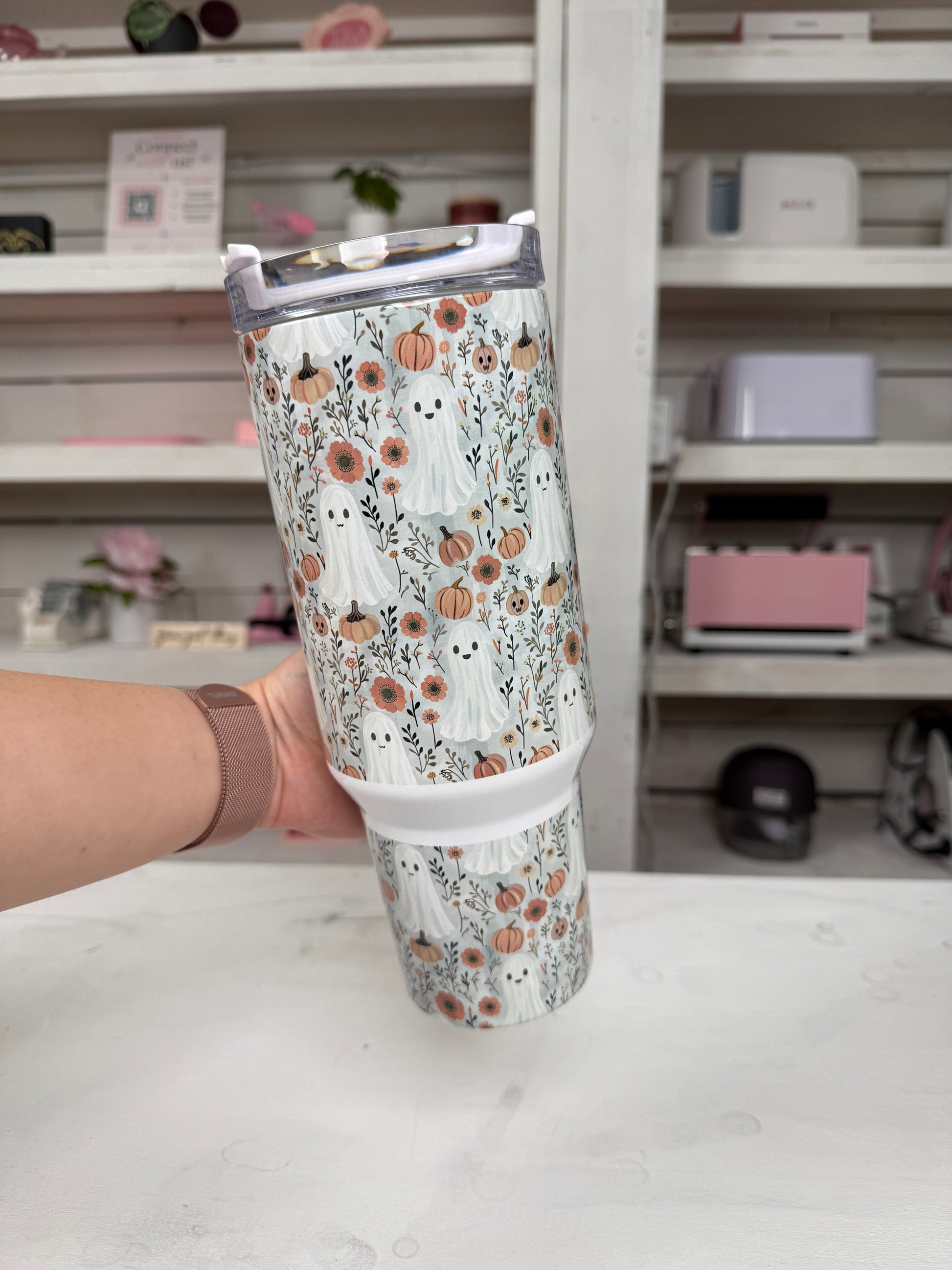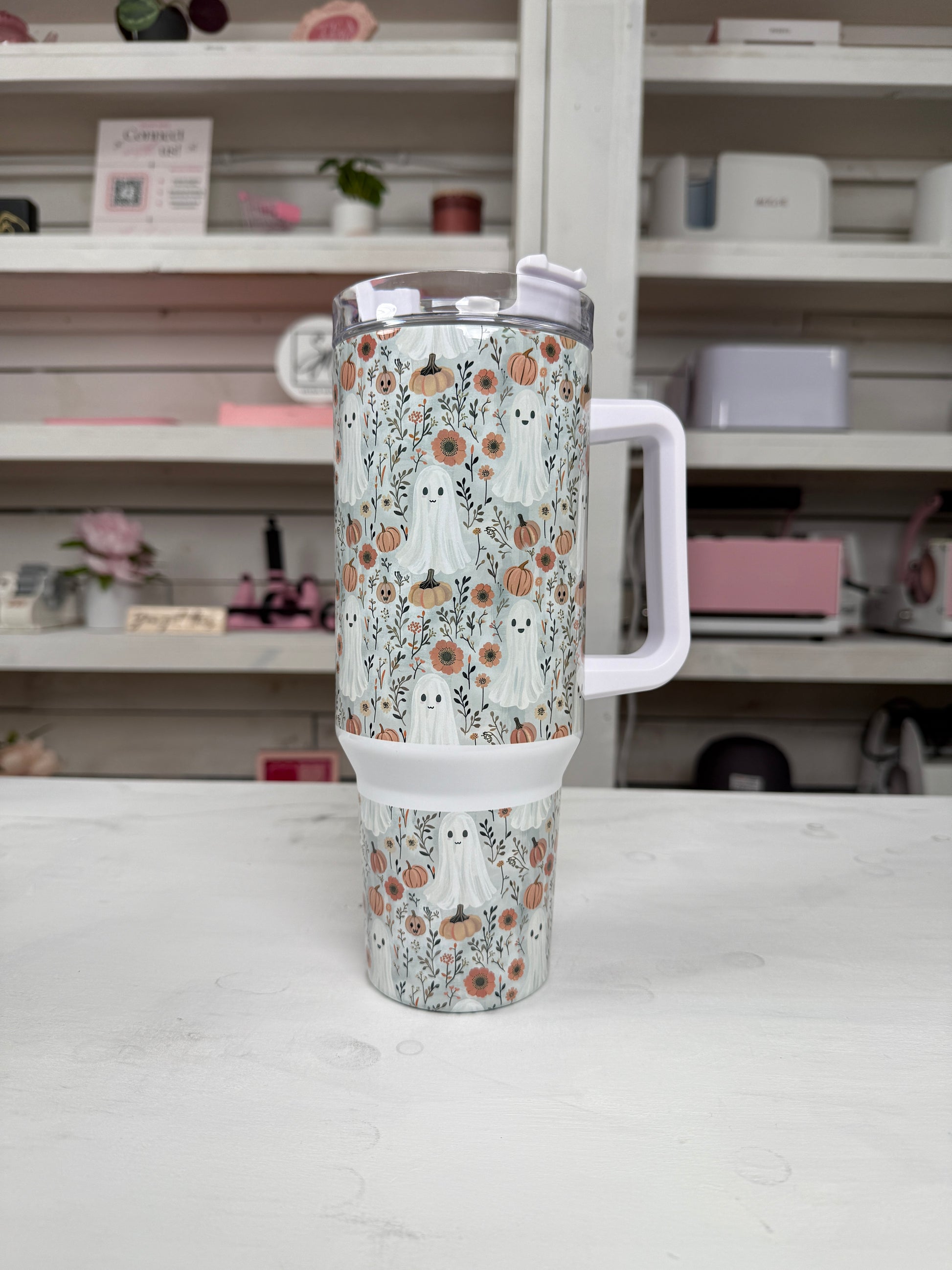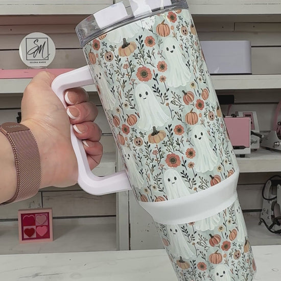 Fall Pumpkin Ghosties 40oz tumbler, Fall Ghost Vibes quencher, Fall custom tumbler