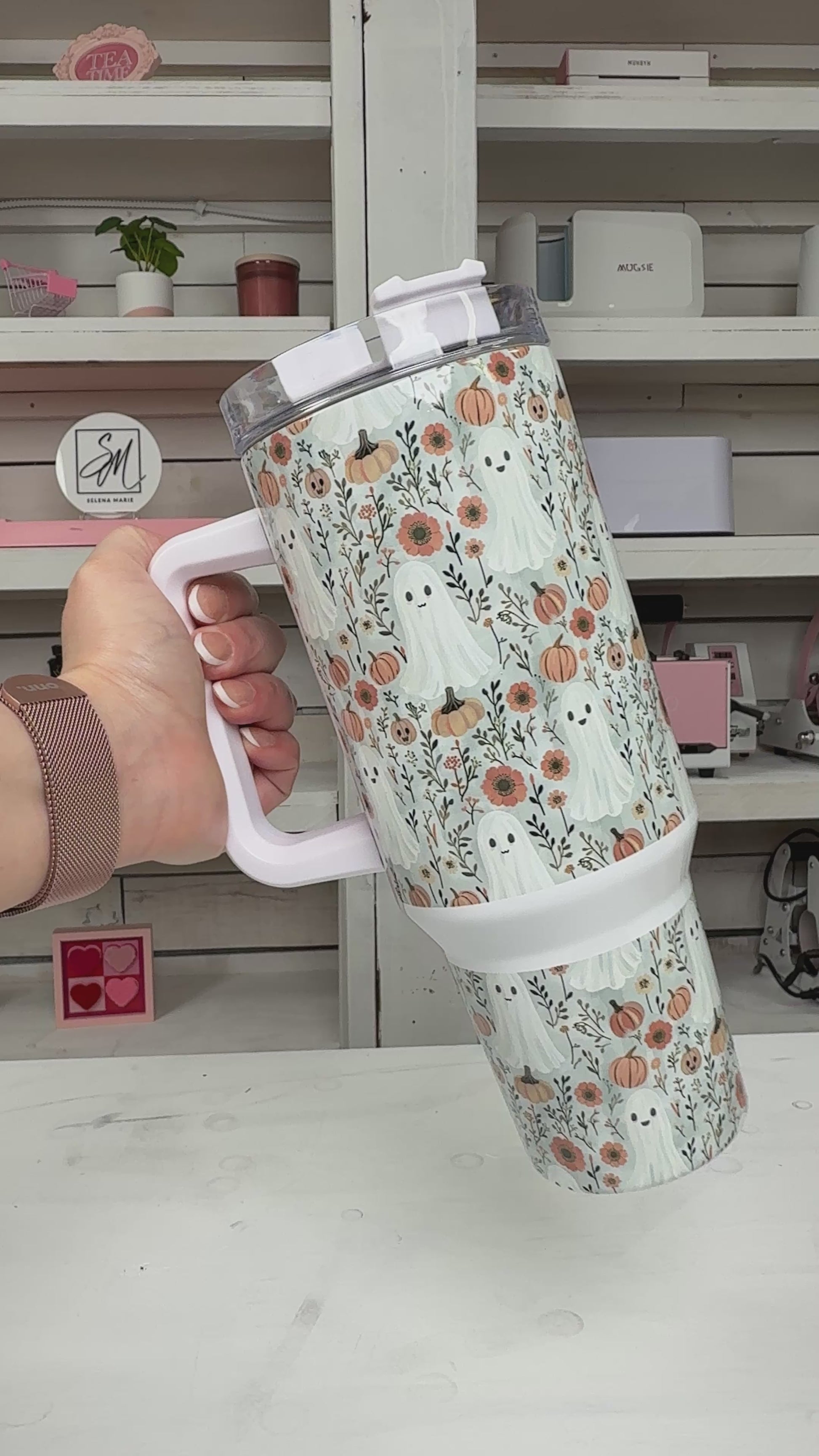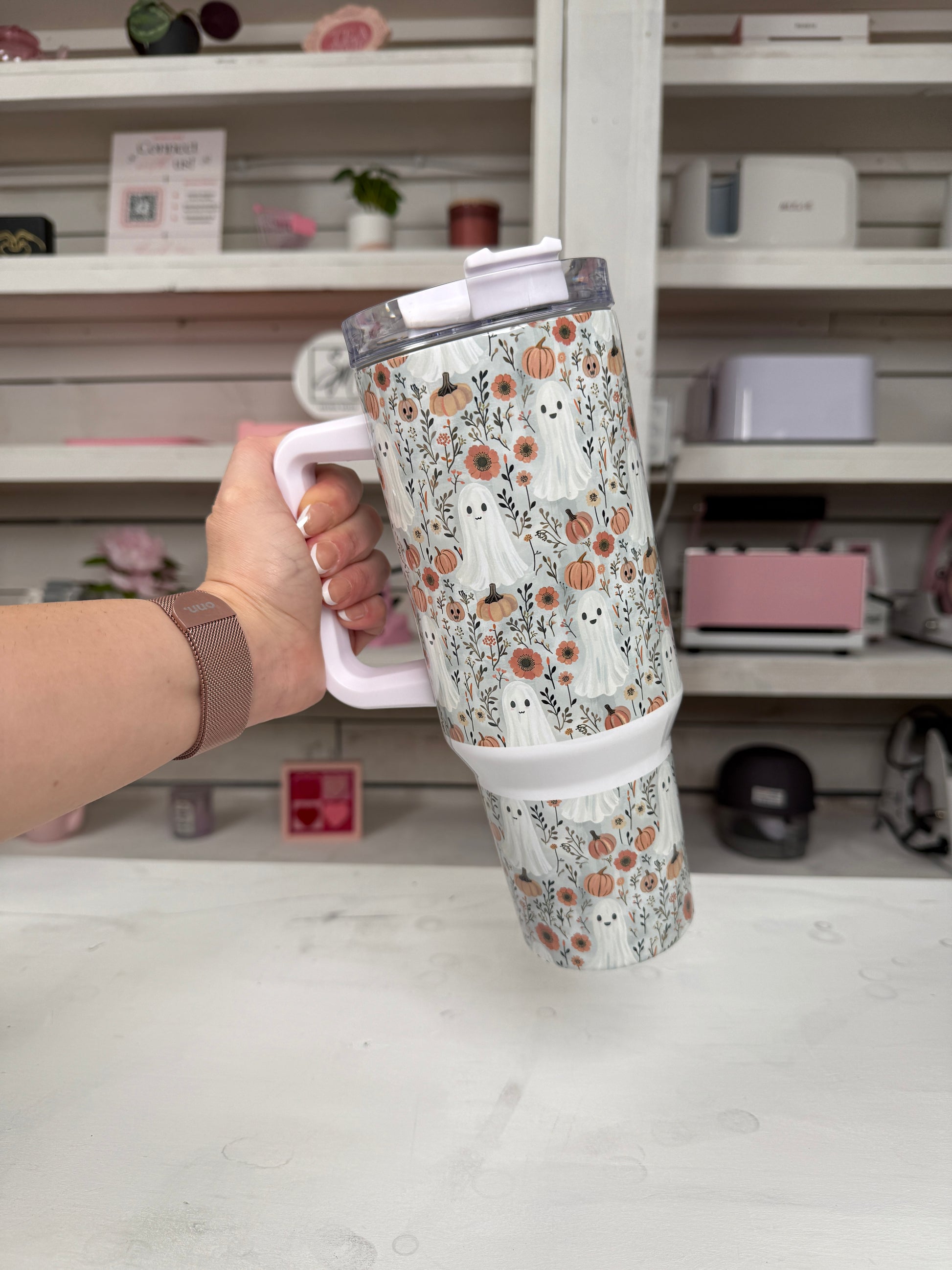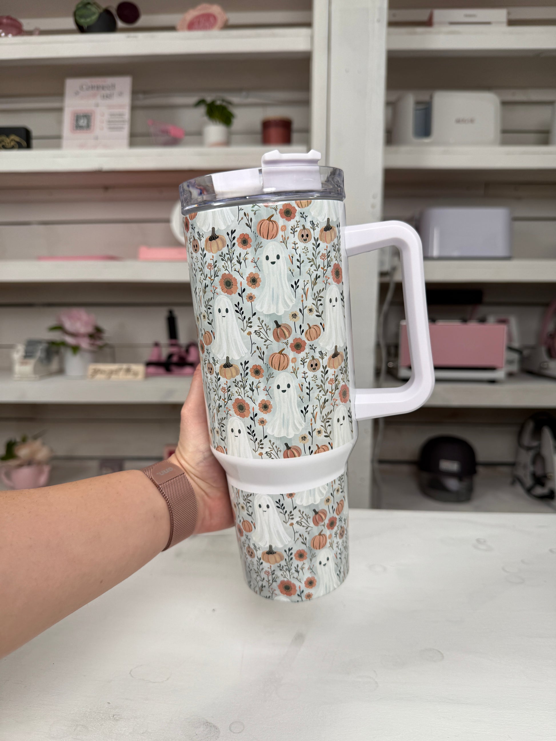 Fall Pumpkin Ghosties 40oz tumbler, Fall Ghost Vibes quencher, Fall custom tumbler
