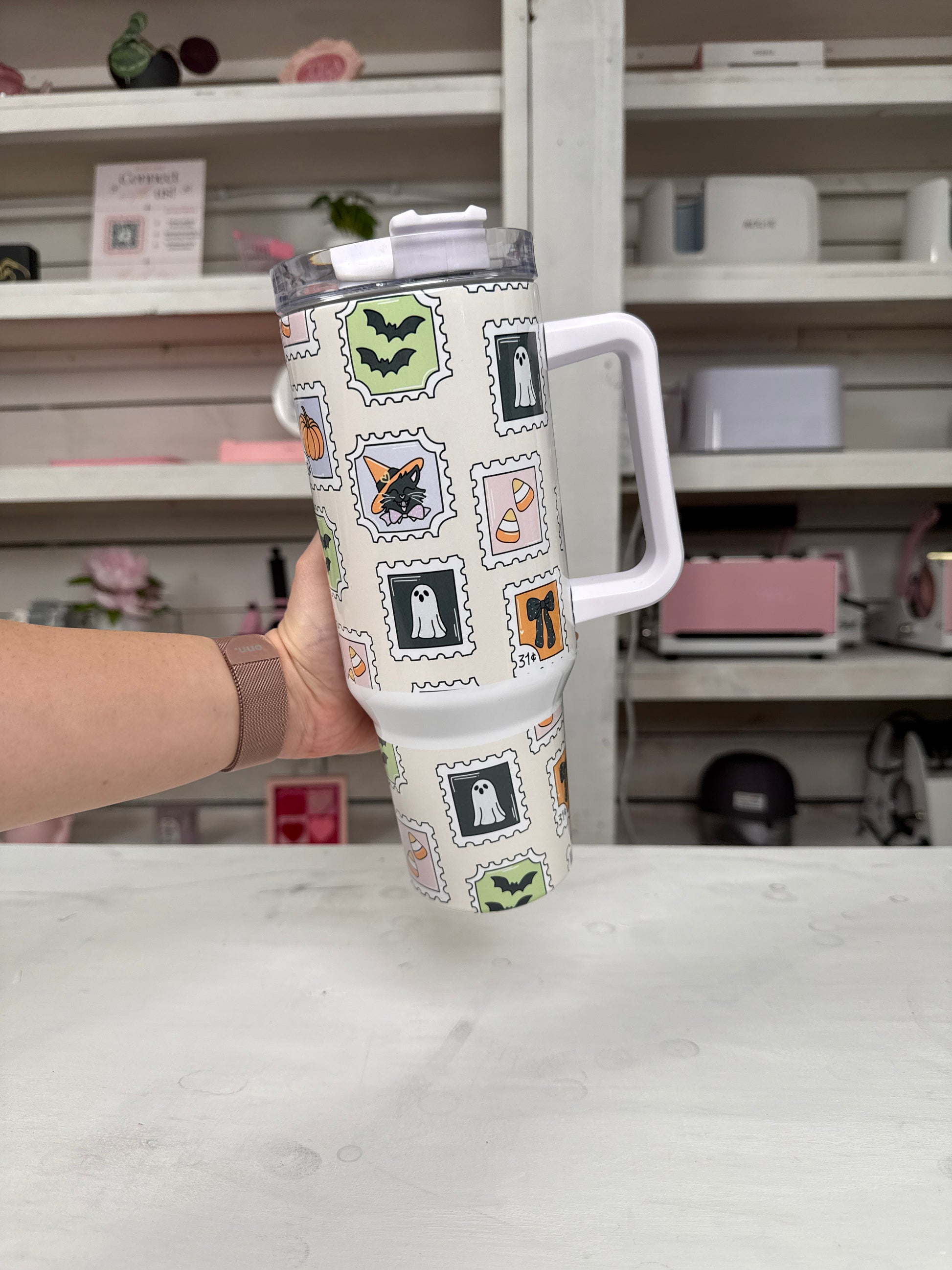 Halloween Vintage Stamps 40oz tumbler, Spooky Stamps quencher, Halloween Stamps custom tumbler