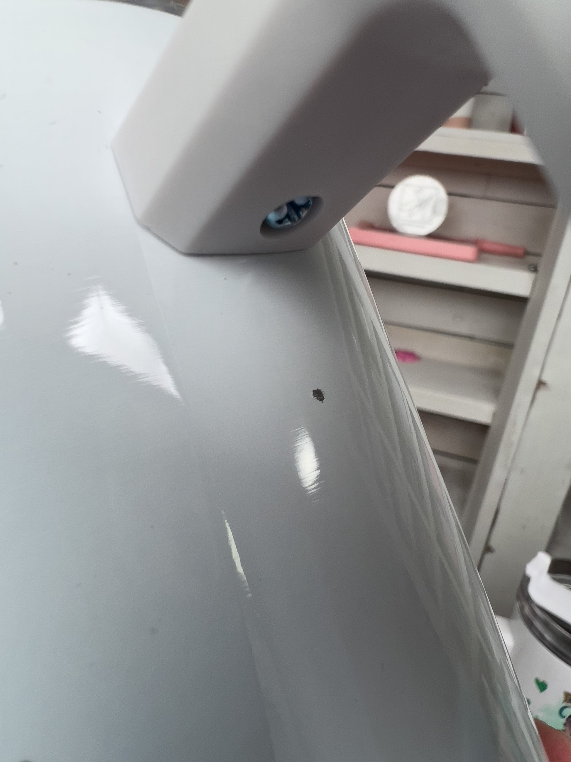 This tumbler has a small scratch shown in photo under handle. Clearance sales are non-refundable.