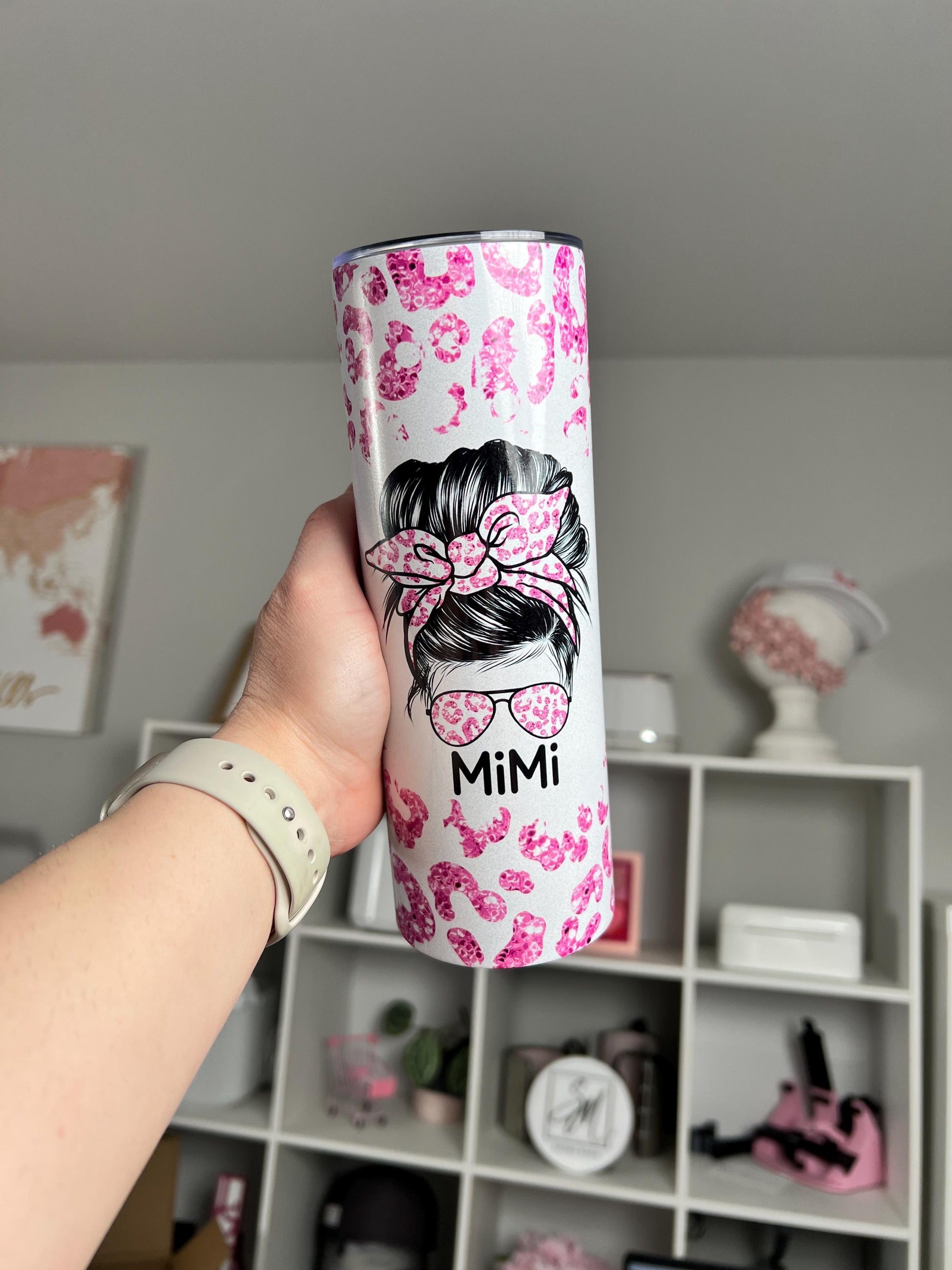 Mimi Tumbler, Cheetah Mimi Tumbler, Mimi Gift, Mimi Life, 20oz Skinny Tumbler with Lid & Straw